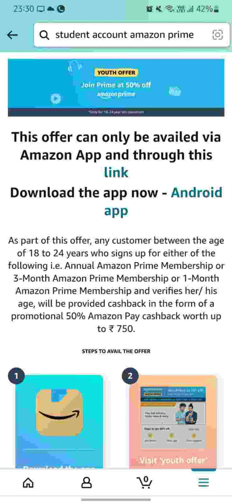 In India, Amazon is providing the Youth Offer for customers between 18 to 24 years old. For this, you don’t necessarily have to be a student but must verify your age. Both offers provide you with almost the same benefits and perks of Prime membership.
